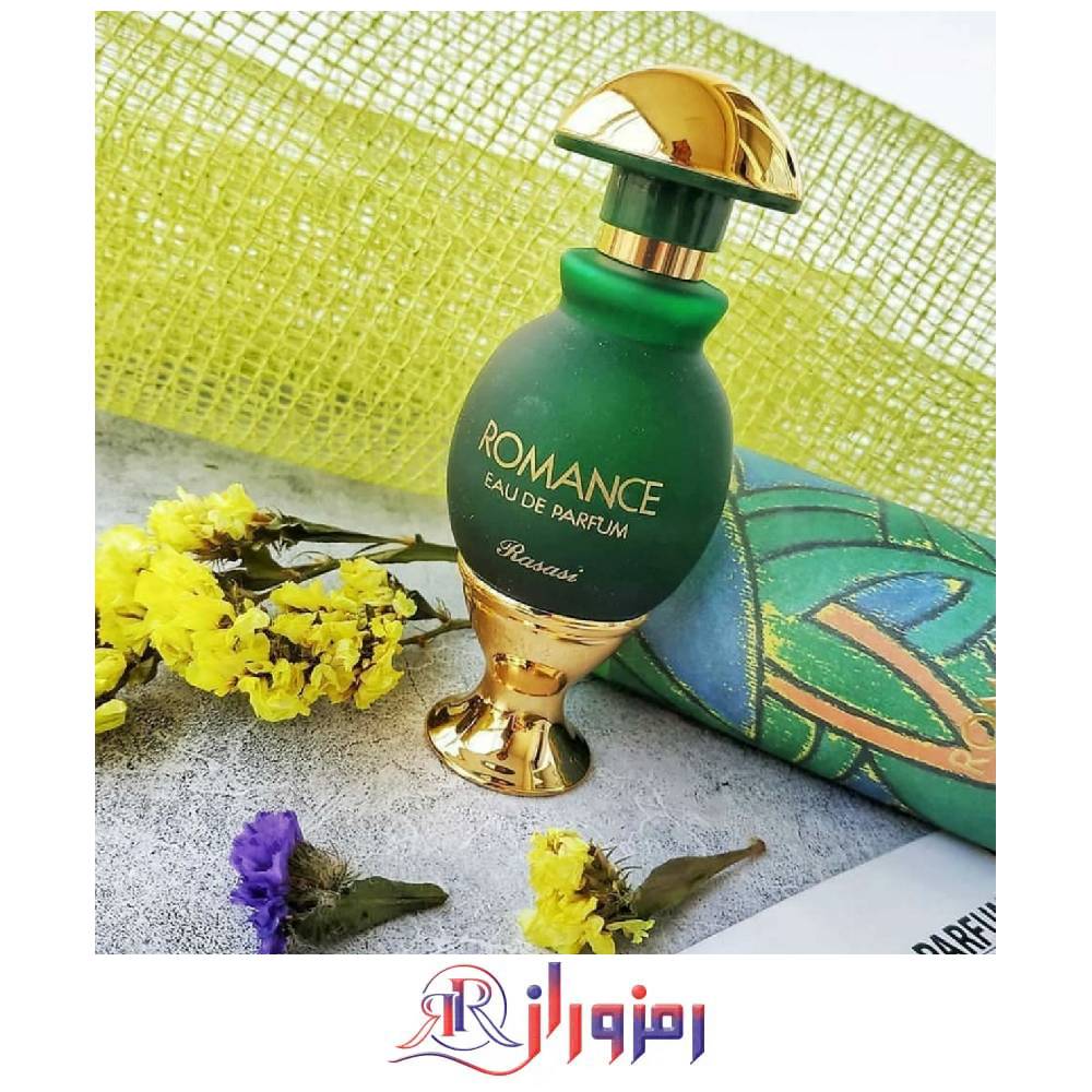 ادکلن رومنس رساسی Rasasi Romance ٤٥ میل عطری زنانه با رایحه ای تلخ و گرم از برند رساسی امارات است که جزو عطرهای پرطرفدار این برند است.