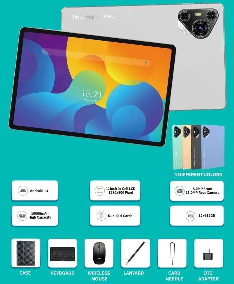 Telsil P200 tablet, 512 GB capacity, 12 GB RAM, 11-inch keyboard