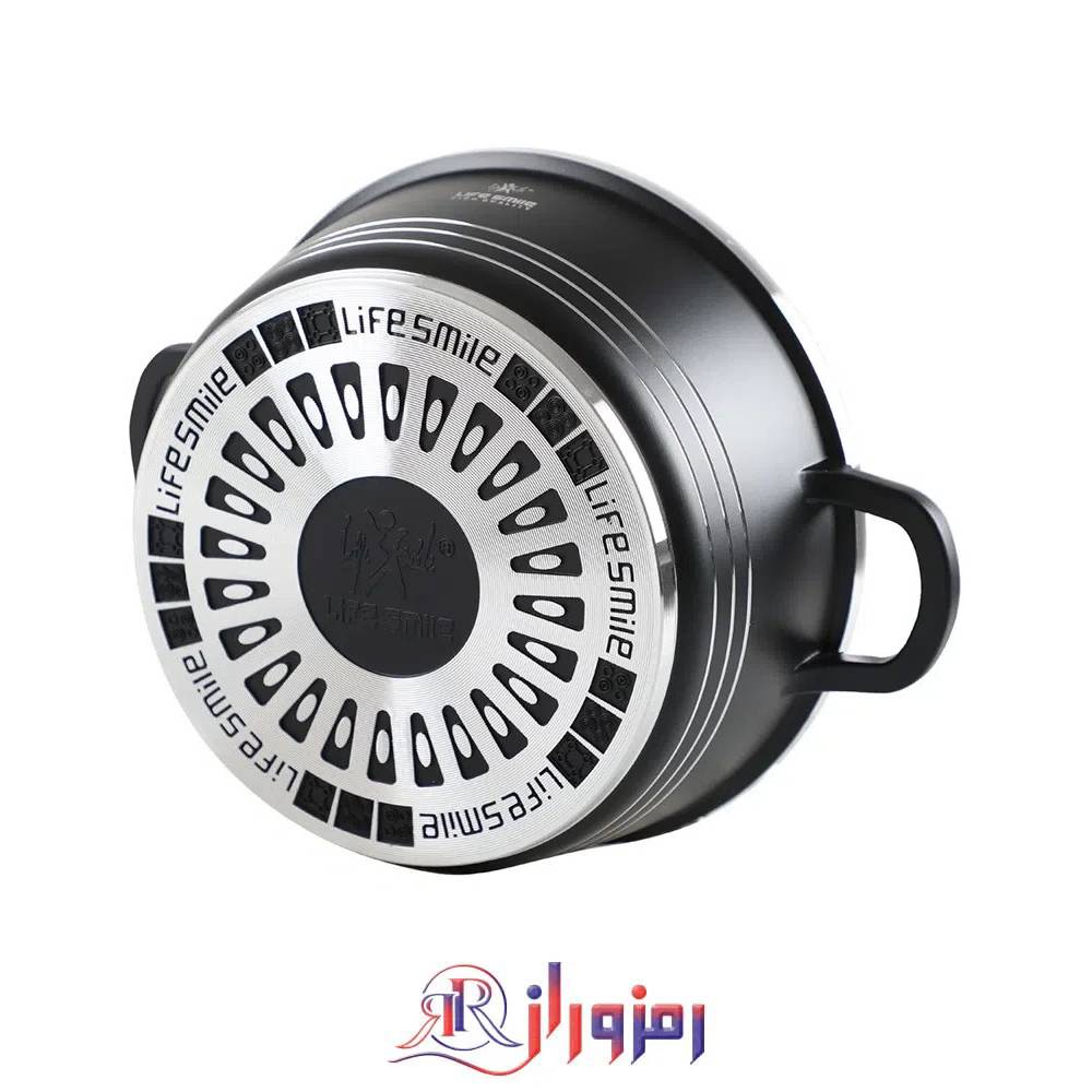 سرویس قابلمه سرامیکی لایف اسمایل اصلی مدل LUP6-BB یکی از محصولات 6 پارچه ی برند لایف اسمایل است که دارای سه عدد قابلمه در اندازه های متفاوت 16،20،24 و سه درب که هر کدام مخصوص یک قابلمه می باشد. جنس بدنه ی این سرویس قابلمه از آلومینیوم ریخته گری ساخته شده است که سبب می شود تا استحکام و دوام محصول در برابر ضربه و خراشیدگی بالاتر رود و قابلمه ها مقاومت بیشتری داشته باشند.بدنه ی سرامیکی سرویس قابلمه سرامیکی لایف اسمایل اصلی مدل LUP6-BB سبب می شود تا حرارت و گرما به صورت یکنواخت در تمام سطح قابلمه پخش شود و مواد به صورت کامل و در یک زمان پخته شوند کف قابلمه القایی بوده و قابلیت شعله پخش کن دارد و برای هر نوع اجاقی از جمله گازی، برقی، هالوژنی، سرامیکی و فر نیز مناسب است.