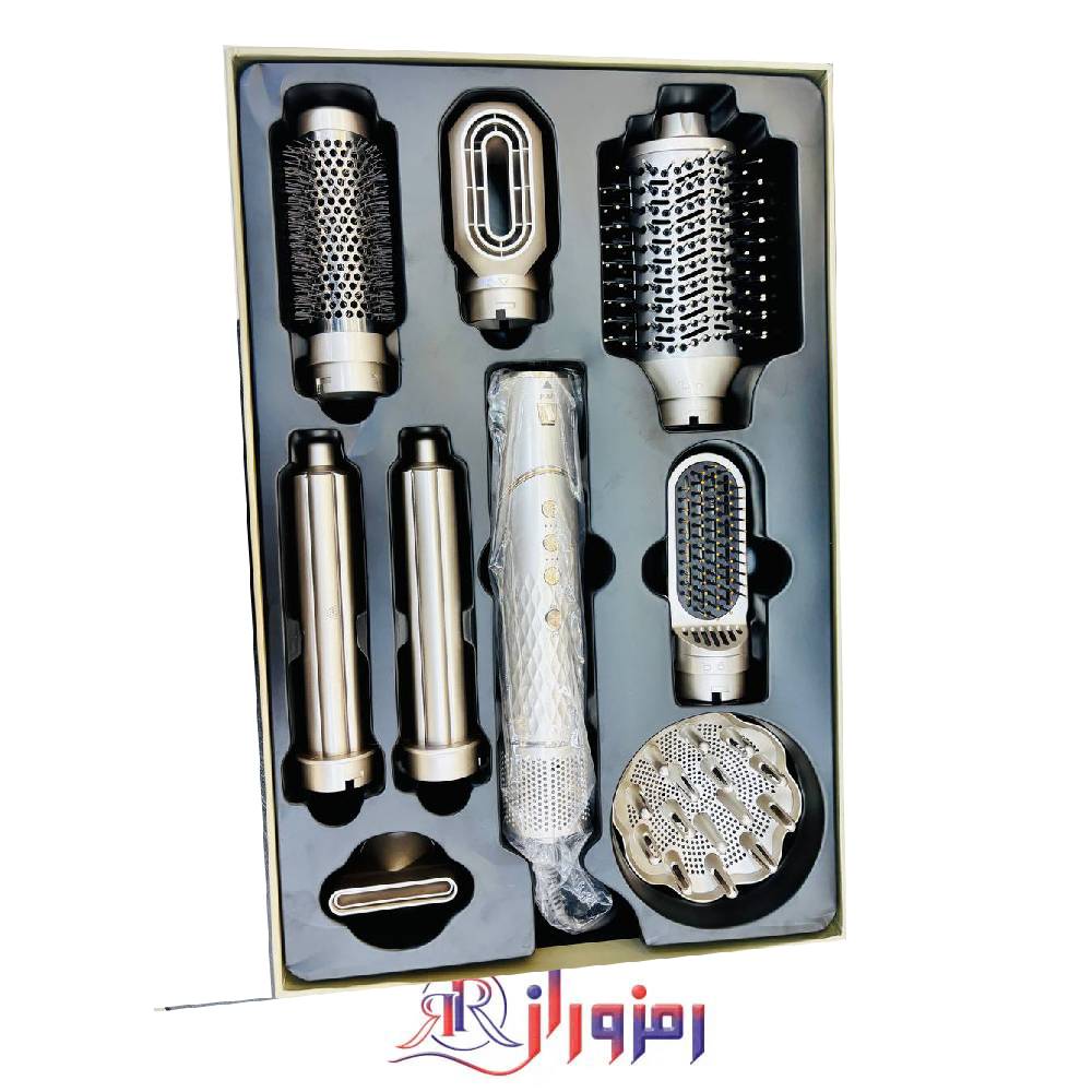 ست شامل2 سری براشینگ، 1 سری دیسپانسر، 2 عدد کرلی، 1 عدد شونه، 1 عددصاف کننده، 1 سری جمع کننده