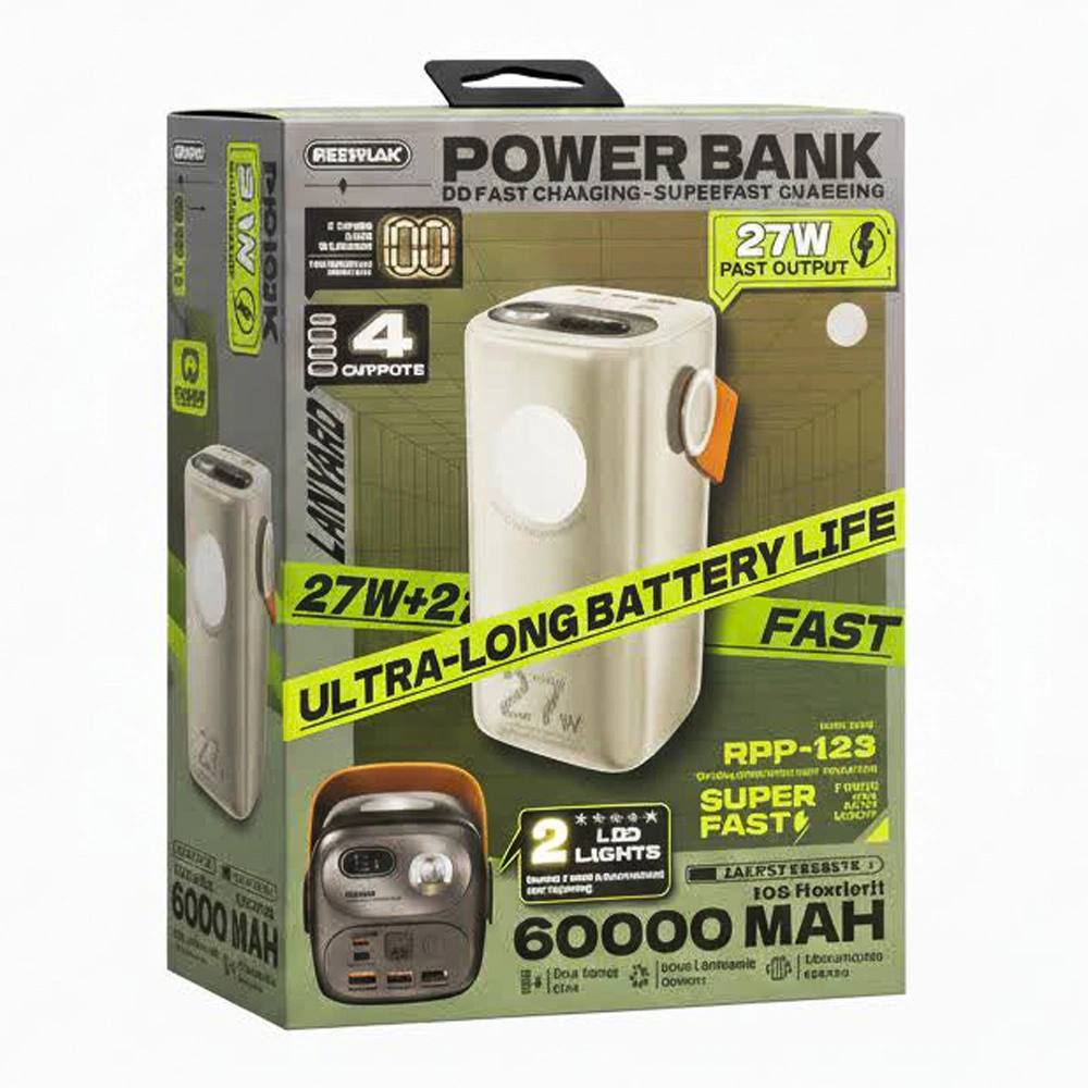 پاوربانک ریمکس مدل RPP123 ظرفیت ۶۰ هزار میلی آمپر ساعت ۲۷ وات